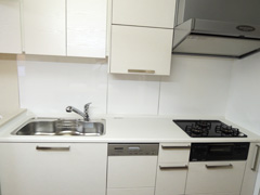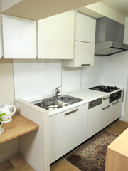 シンクの隣に吊り戸棚を設置。吊り戸棚の収納量が多いため、食器棚は処分されたそうです